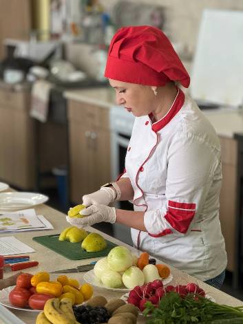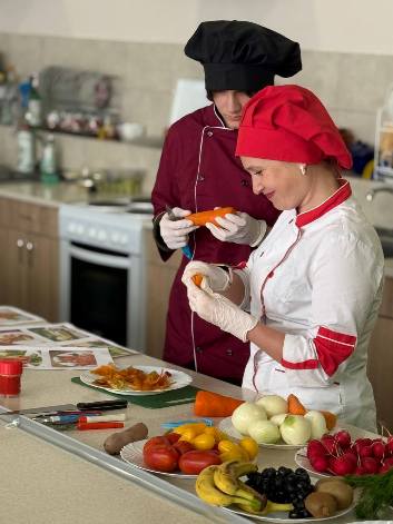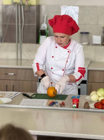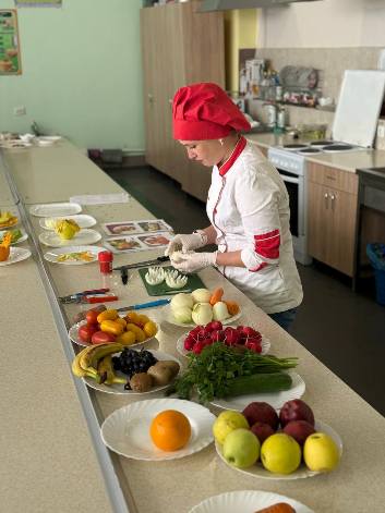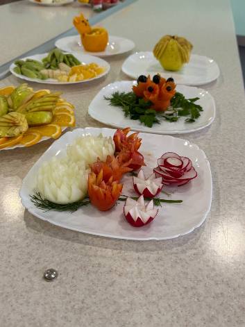 Викладач спецпредметів Рибак Яна власноруч продемонструвала, як із овочів та фруктів можна вирізати справжні шедеври, проявляючи фантазію і творчість.