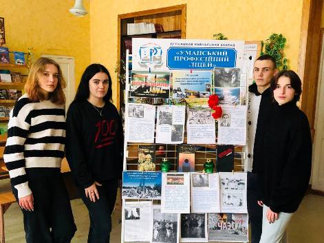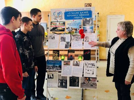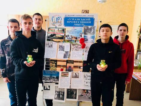 Згадуючи ту страшну аварію, ми віддаємо данину мужності, самовідданості і високого професіоналізму учасників ліквідації наслідків аварії. Саме з цією метою в ДНЗ «Уманський професійний ліцей» бібліотекар Вікторія Сєдова провела інформаційно-просвітницький захід «Народ пам’ятає героїв Чорнобиля» та організувала тематичну фотовиставку «Пам’ятаймо! Вони захистили нас». Хвилиною мовчання вшанували тих, хто не дожив до сьогодення.